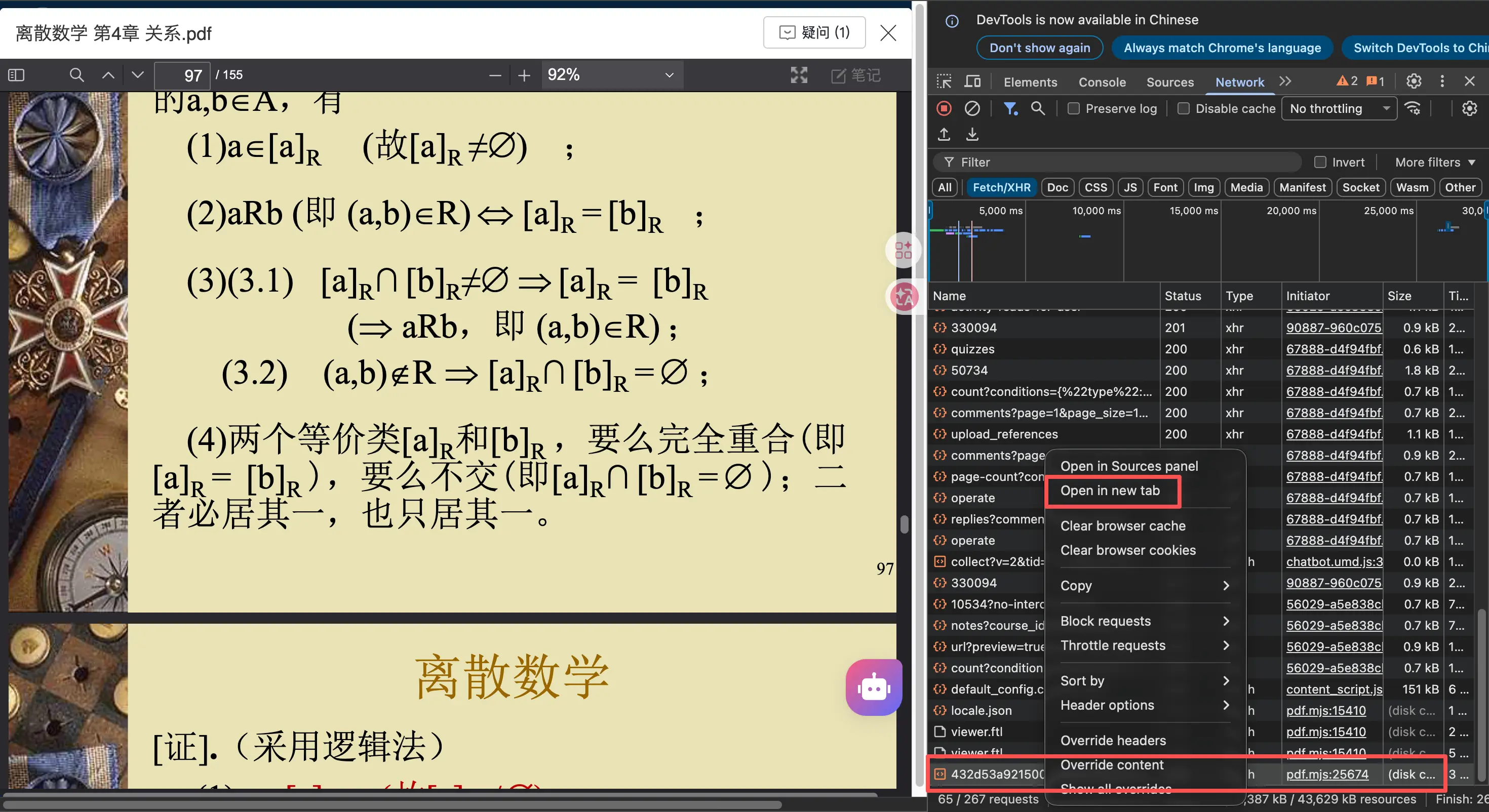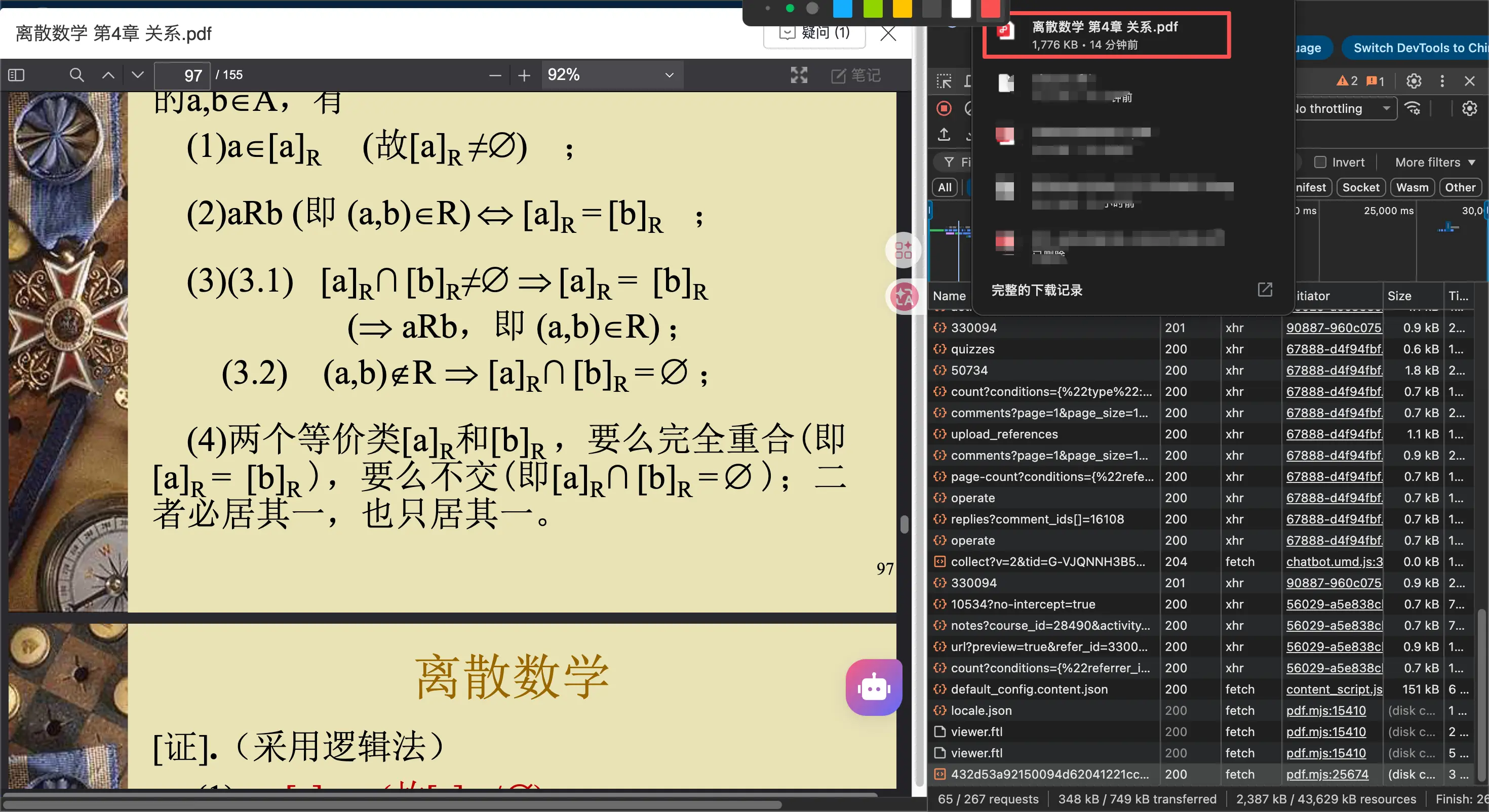 笔者在进行离散数学的复习时,发现上传在思源学堂↗的课件无法被直接下载,于是我顺便研究了下「如何下载网页中的 pdf 文档」这个问题,把方法记录在这里。